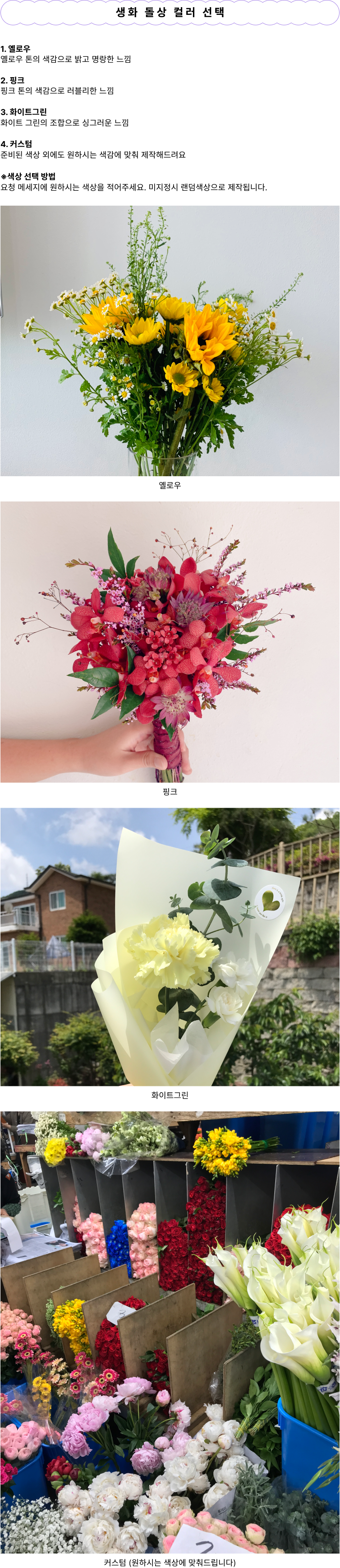 하나 3-5가지 종류의 꽃 또는 소재로 구성된 꽃다발 1개