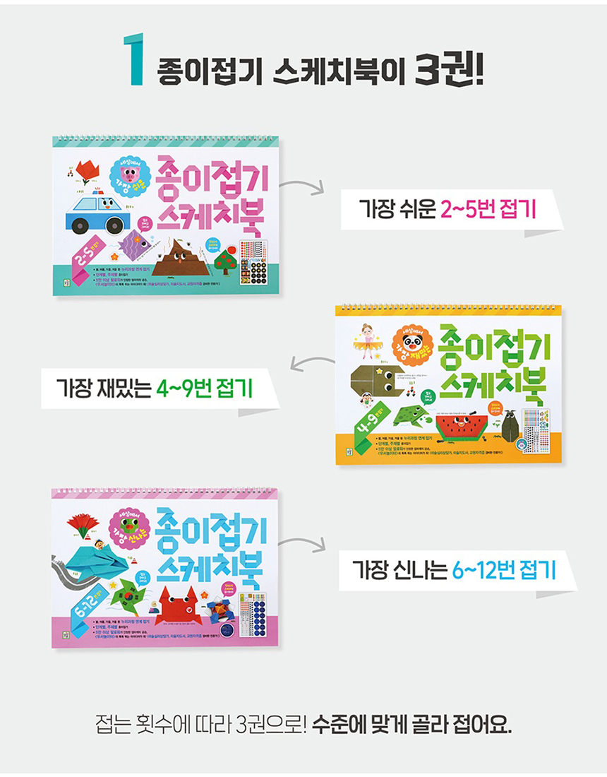 ⭐첫 종이접기⭐ 종이접기 미술놀이 , 종이접기스케치북 (3종+스티커+색종이 100장) :_ 무배