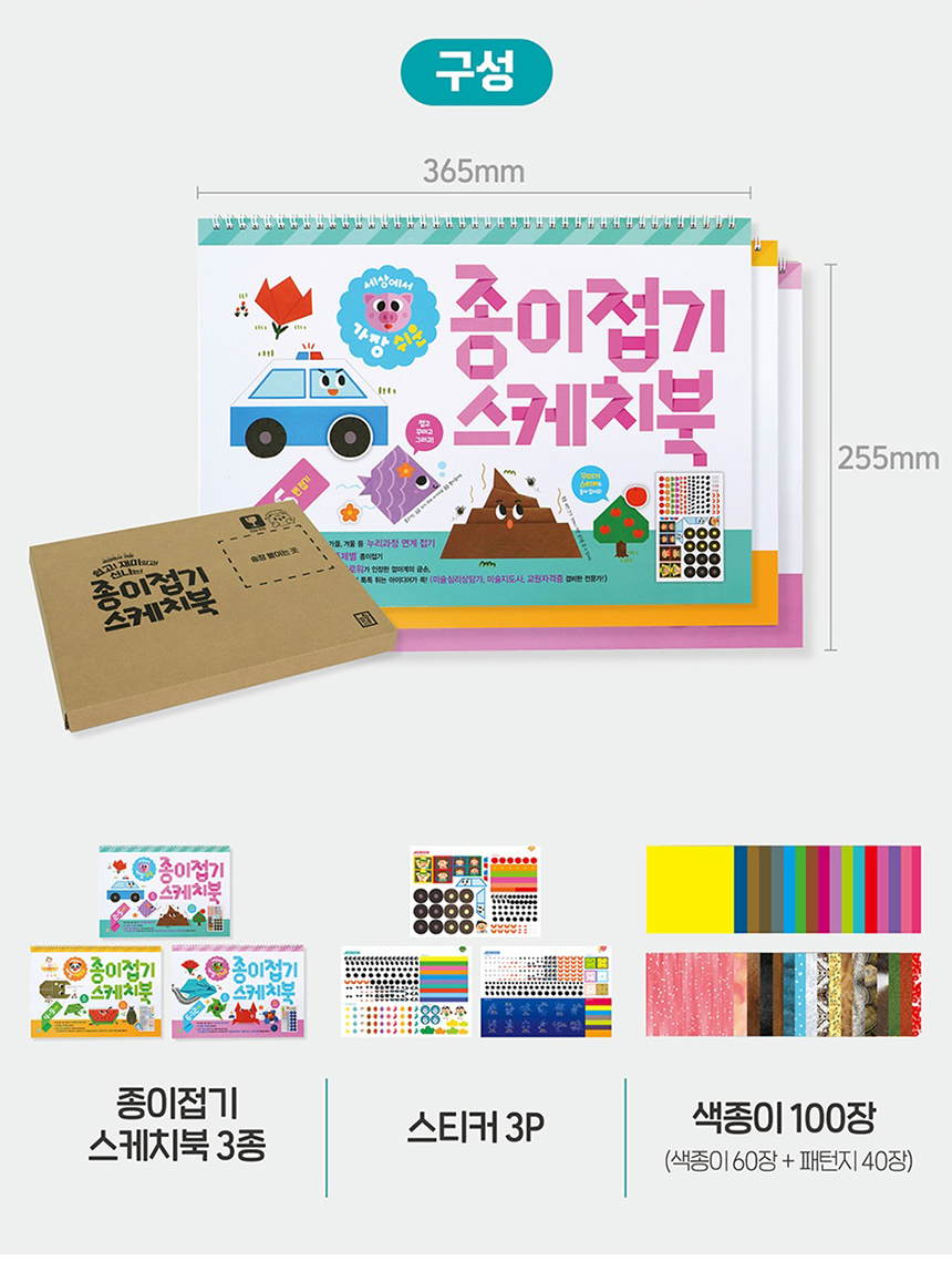 🌈 종이접기 스케치북 3종 + 스티커 3P + 색종이 100장 : 21,000원