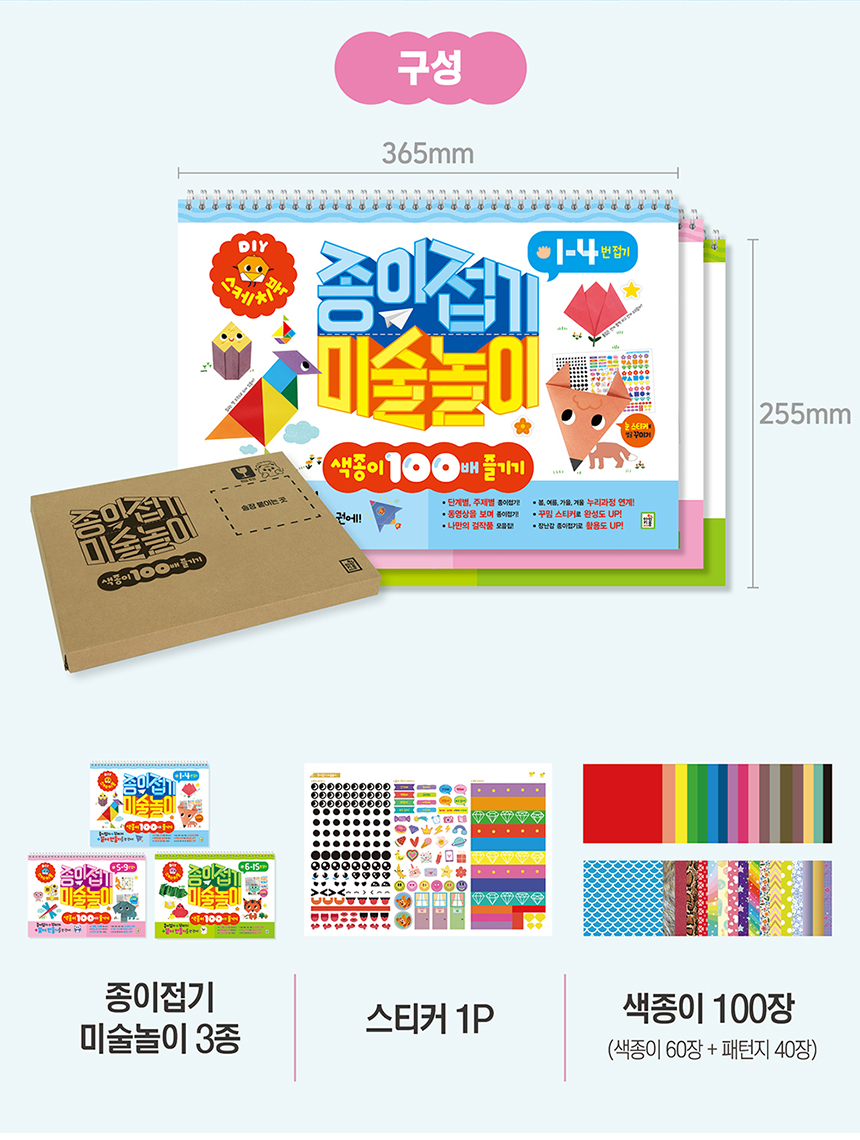 🌈 종이접기 미술놀이 3종 + 스티커 1P + 색종이 100장 : 21,000원