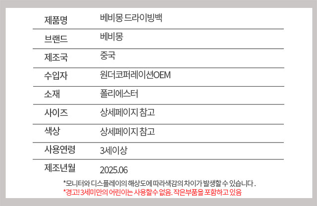 베비몽 드라이빙백 초특가⭐ :  28,900원