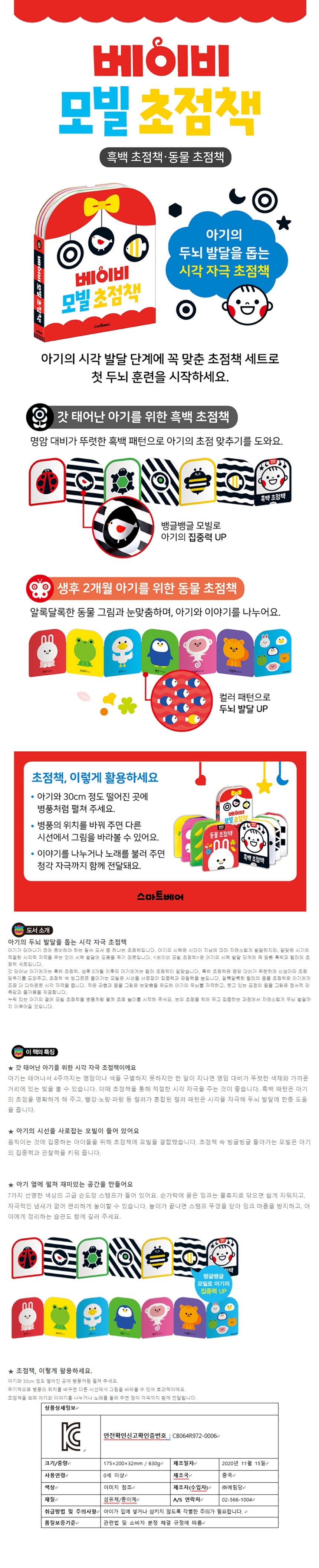 🎈 신생아를 위한 흑백, 색깔 인지 발달을 돕는 컬러, 2종류의 초점책!
