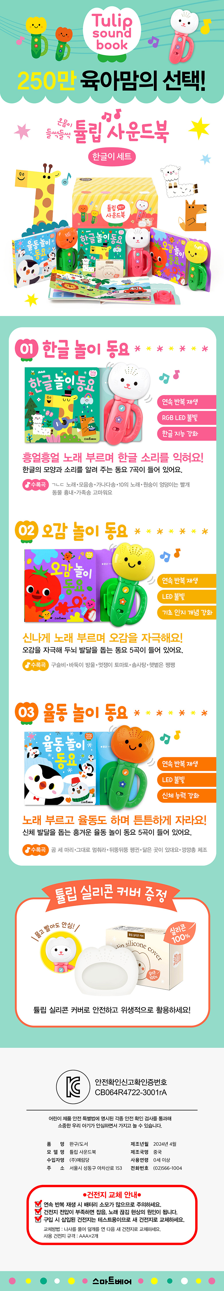 육아 필수템 튤립사운드북⭐ 스마트베어 베이비 감각놀이 4종, 3종세트 (무료배송)