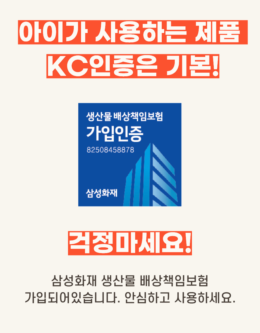 💜 안심할 수 있는 안전성 ! KC 인증 획득 및 삼성화재 생산물 배상책임보험 가입으로 믿음직해요