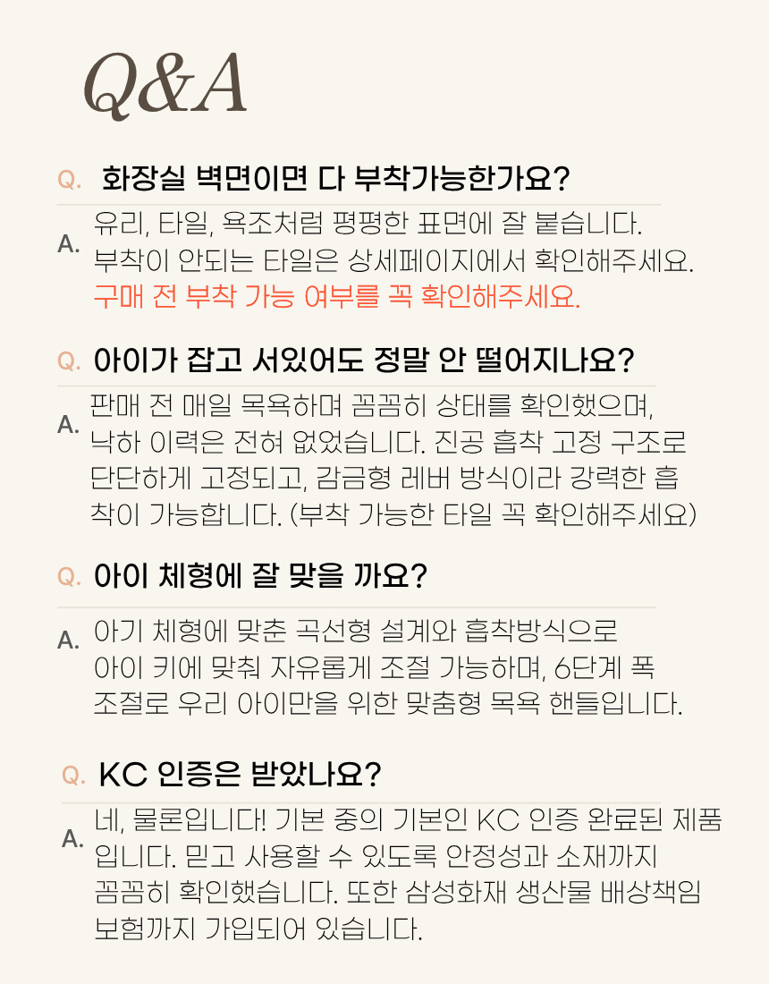 1. 샤워핸들 마카롱 핑크 + 미끄럼방지매트(75X43) 베이지 + 목욕의자 + 샴푸캡 + 샤워기홀더